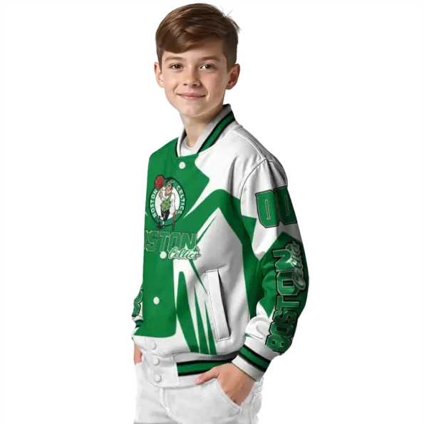 A true must-have for the sophisticated NBA enthusiast, this Personalized Boston Celtics Chevron Arrow Green Varsity Jacket from Boston Celtics Jackets offers quality construction for durable, all-day comfort – ideal for showcasing your team pride. Its unique design and superior build provide exceptional value, making it the perfect way to embody your team identity like an iconic jersey.