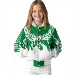 Here’s a closer look at what makes our Customized Boston Celtics Winged Blaze Green White Varsity Jacket stand out: