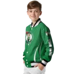 For the discerning NBA fan who values elevated style, this Personalized Boston Celtics Hexagon Grid Green Bomber Jacket from Boston Celtics Jackets’s NBA Fan Pro boasts premium construction for lasting comfort and a proud display of team spirit. Its distinctive design and superior quality offer exceptional value, allowing you to wear your fandom with the same pride as your favorite jersey.
