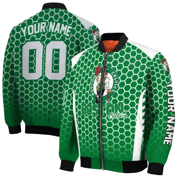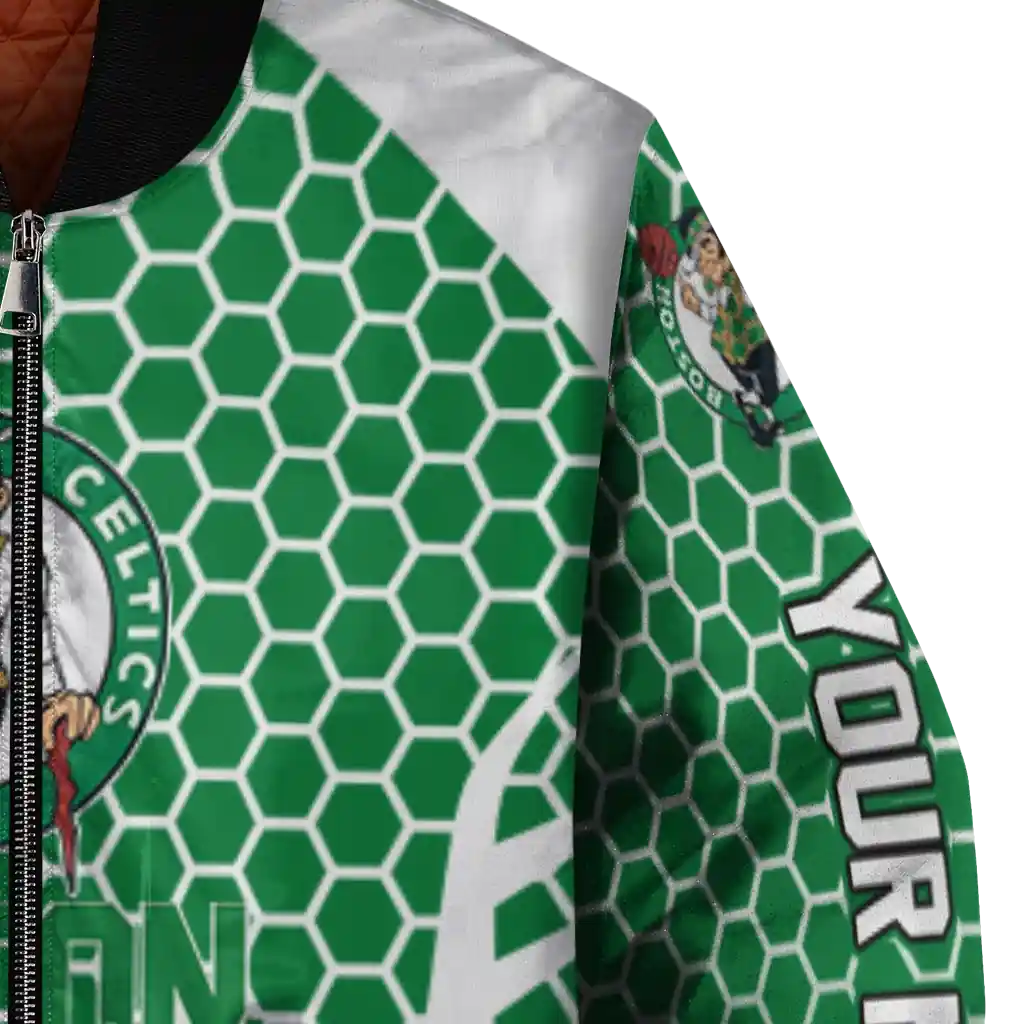 Personalized Boston Celtics Hexagon Grid Green Bomber Jacket