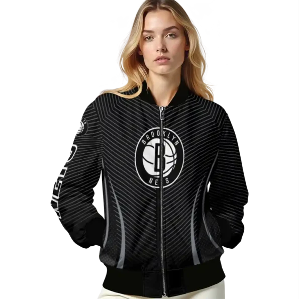 Custom Brooklyn Nets Chevron Arrow Black Bomber Jacket
