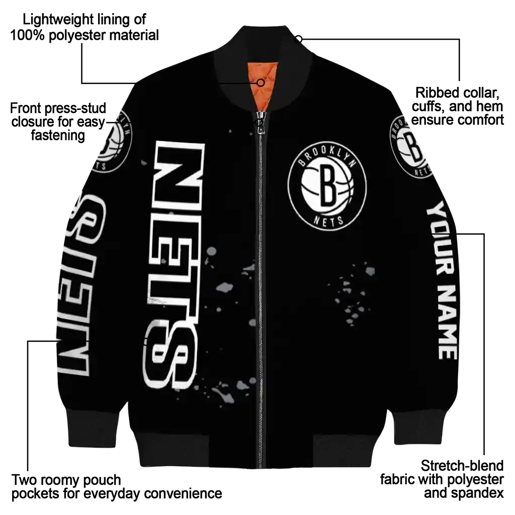 For the discerning NBA fan who values elevated style, this Custom Brooklyn Nets Chevron Arrow Black Bomber Jacket from Brooklyn Nets Jackets’s NBA Fan Pro boasts premium construction for lasting comfort and a proud display of team spirit. Its distinctive design and superior quality offer exceptional value, allowing you to wear your fandom with the same pride as your favorite jersey.