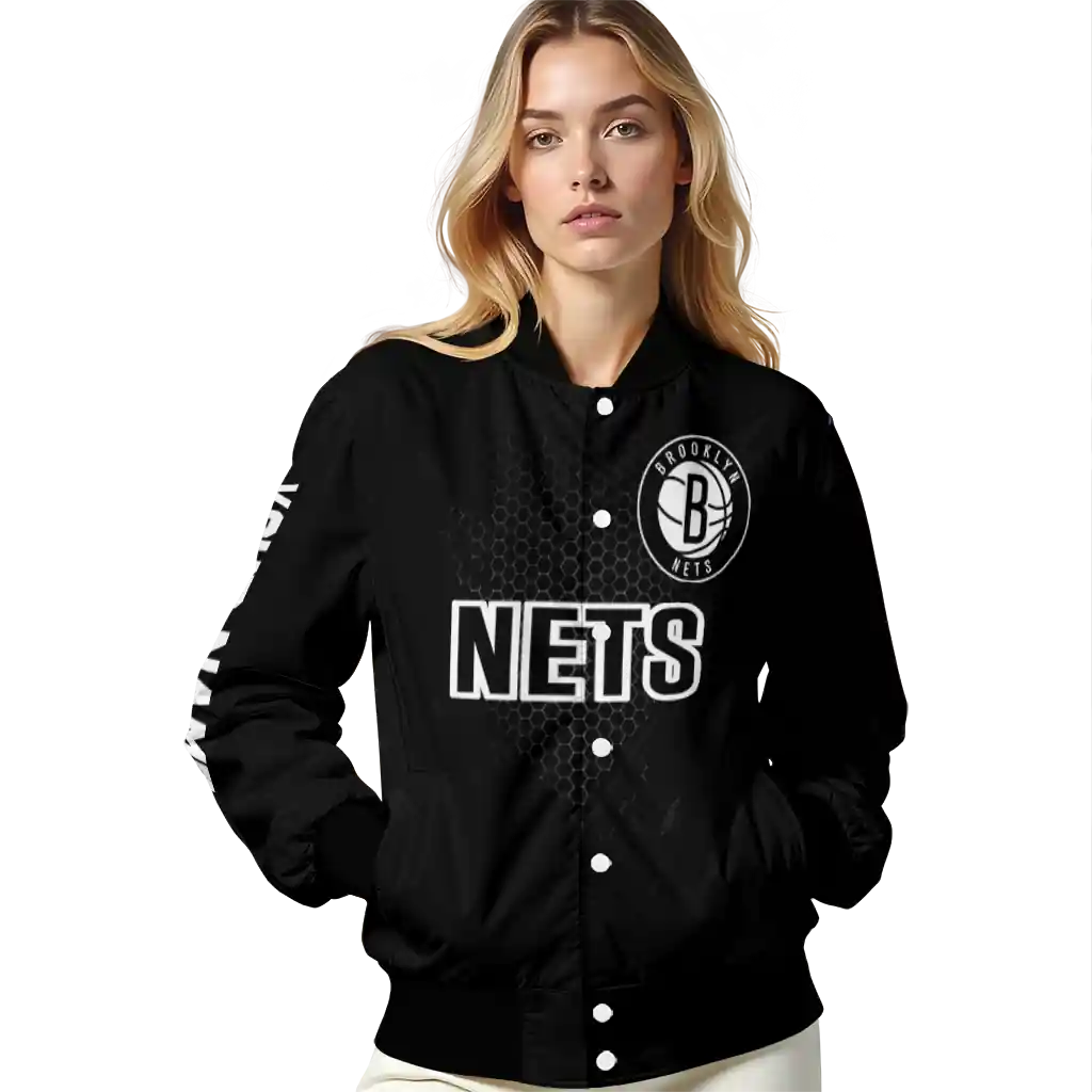 Customized Brooklyn Nets Hexagon Mesh Black Varsity Jacket