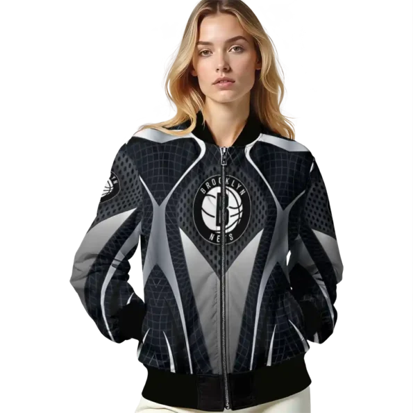 Personalized Brooklyn Nets Mesh Chest Black Bomber Jacket