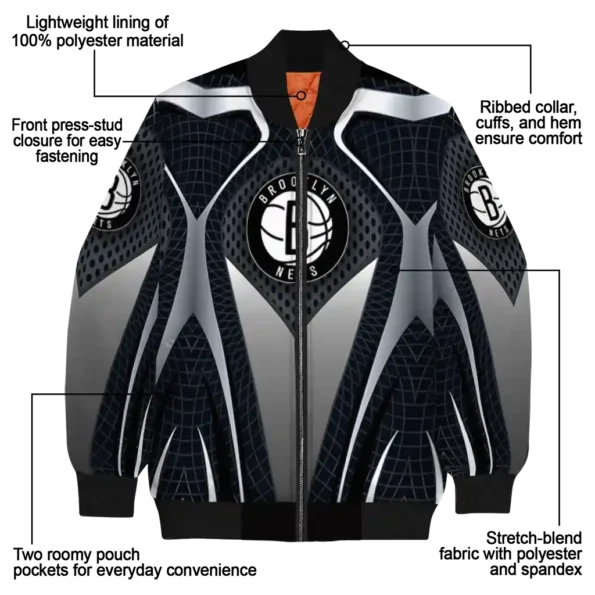 For the discerning NBA fan who values elevated style, this Custom Brooklyn Nets Chevron Angles Black Bomber Jacket from Brooklyn Nets Jackets’s NBA Fan Pro boasts premium construction for lasting comfort and a proud display of team spirit. Its distinctive design and superior quality offer exceptional value, allowing you to wear your fandom with the same pride as your favorite jersey.