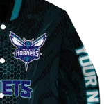 Here’s a closer look at what makes our Personalized Charlotte Hornets Hexagon Mesh Teal Black Varsity Jacket stand out:
