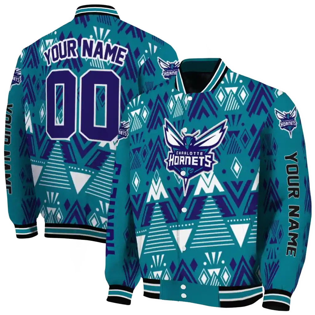 Personalized Charlotte Hornets Pyramid Shapes Teal Varsity Jacket