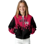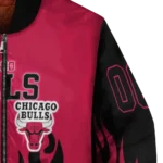 Uncover the details that make this Custom Chicago Bulls Flame Border Red Black Bomber Jacket a truly exceptional piece.