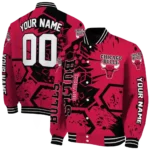 Here’s a closer look at what makes our Custom Chicago Bulls Hexagon Cluster Red Black Varsity Jacket stand out: