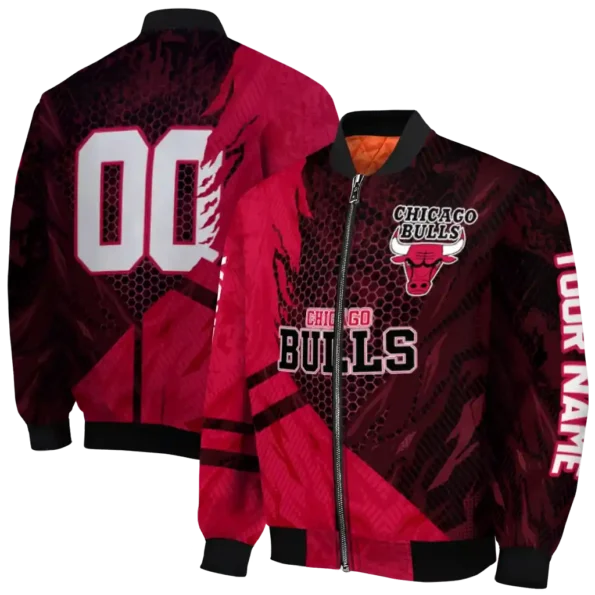 Uncover the details that make this Custom Chicago Bulls Hexagon Mesh Red Black Bomber Jacket a truly exceptional piece.