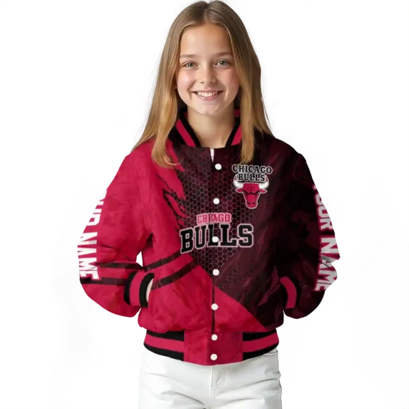 Here’s a closer look at what makes our Custom Chicago Bulls Hexagon Mesh Red Black Varsity Jacket stand out: