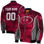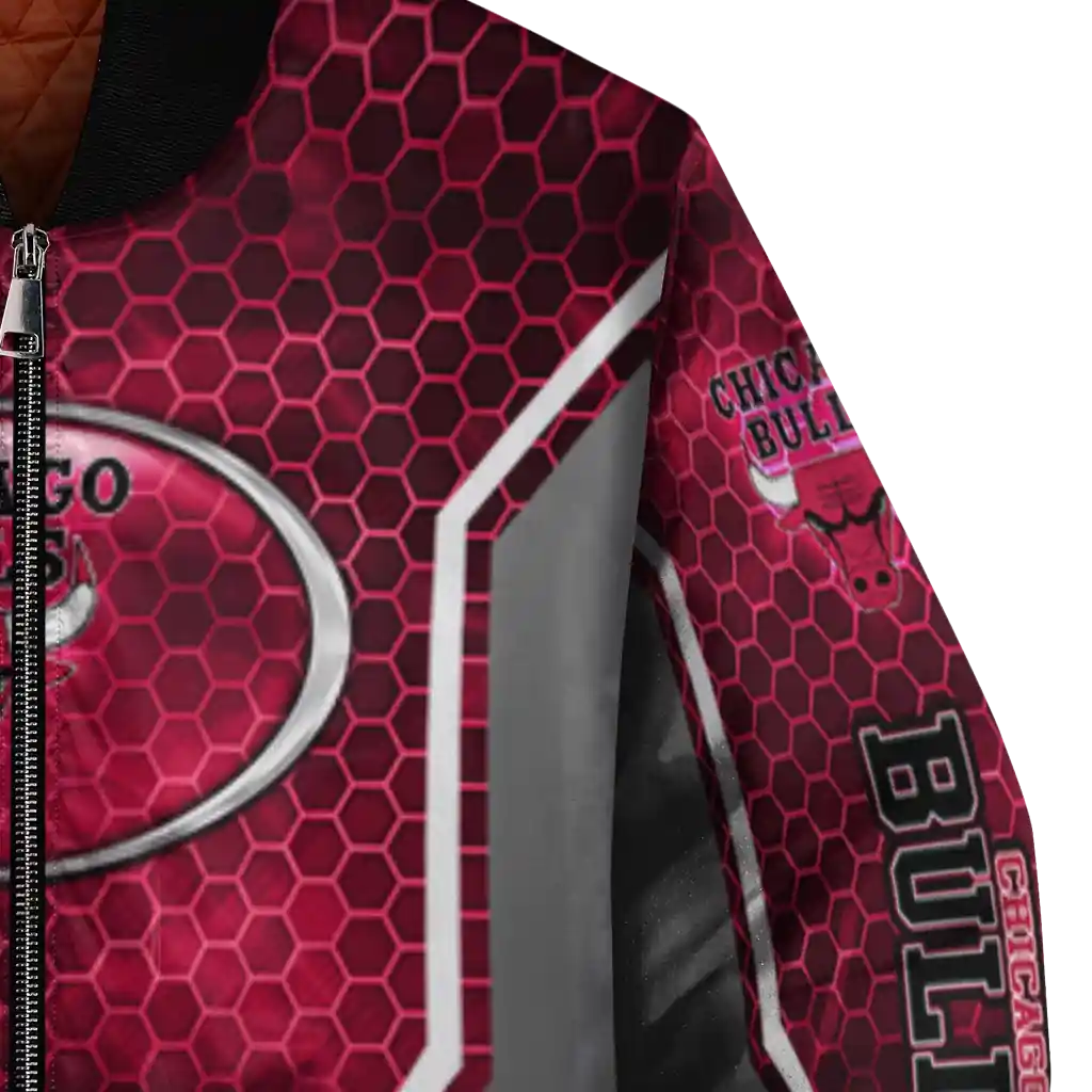 Uncover the details that make this Custom Chicago Bulls Power Plate Red Bomber Jacket a truly exceptional piece.