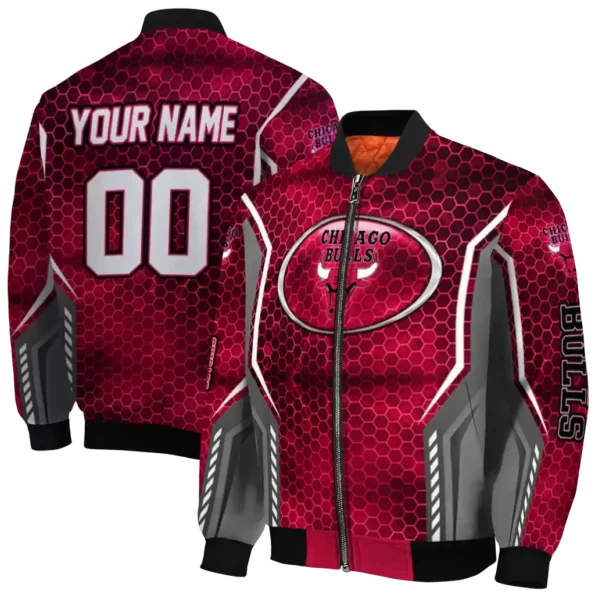 A true must-have for the sophisticated NBA enthusiast, this Personalized Chicago Bulls Hexagon Grid Red Varsity Jacket from Chicago Bulls Jackets offers quality construction for durable, all-day comfort – ideal for showcasing your team pride. Its unique design and superior build provide exceptional value, making it the perfect way to embody your team identity like an iconic jersey.