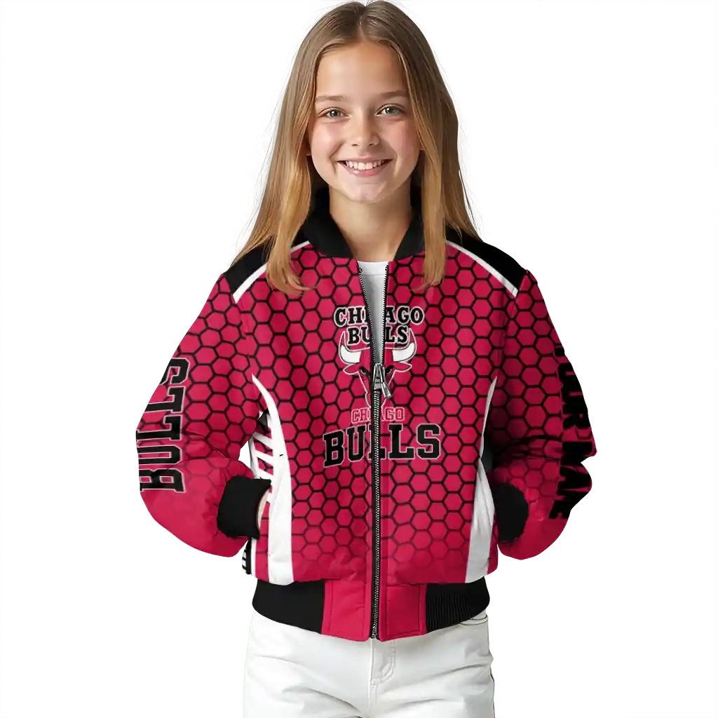 Personalized Chicago Bulls Hexagon Grid Red Bomber Jacket