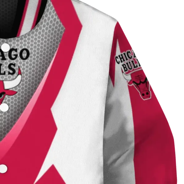 Here’s a closer look at what makes our Personalized Chicago Bulls V Stripes Red White Varsity Jacket stand out: