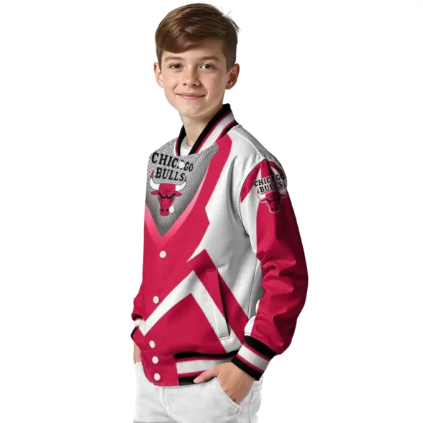 A true must-have for the sophisticated NBA enthusiast, this Personalized Chicago Bulls V Stripes Red White Varsity Jacket from Chicago Bulls Jackets offers quality construction for durable, all-day comfort – ideal for showcasing your team pride. Its unique design and superior build provide exceptional value, making it the perfect way to embody your team identity like an iconic jersey.