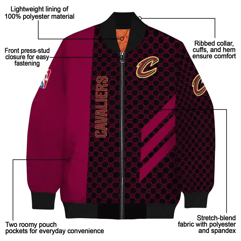 Cleveland Cavaliers Triple Side Stripes Wine Black Bomber Jacket