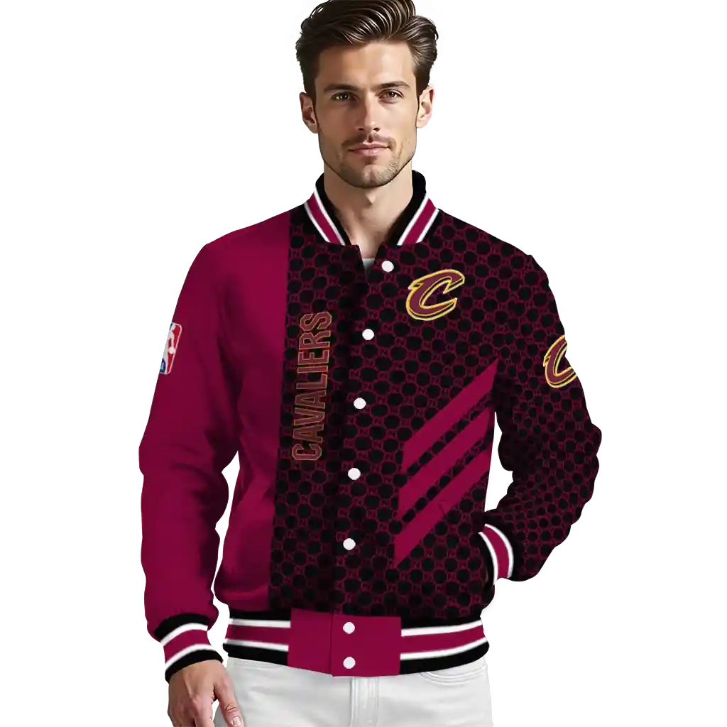 Cleveland Cavaliers Triple Side Stripes Wine Black Varsity Jacket