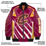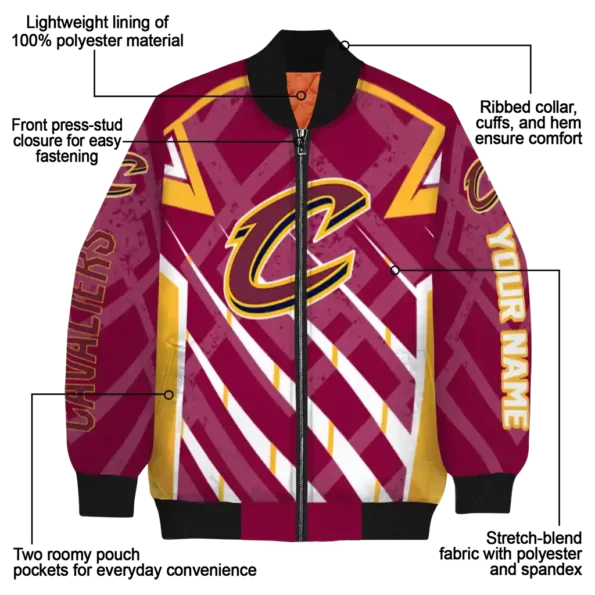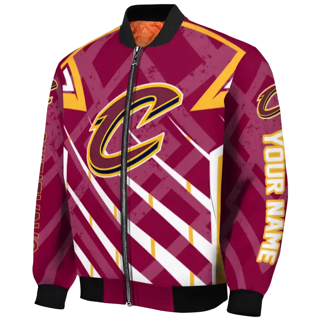 Uncover the details that make this Custom Cleveland Cavaliers Chevron Angles Wine Bomber Jacket a truly exceptional piece.