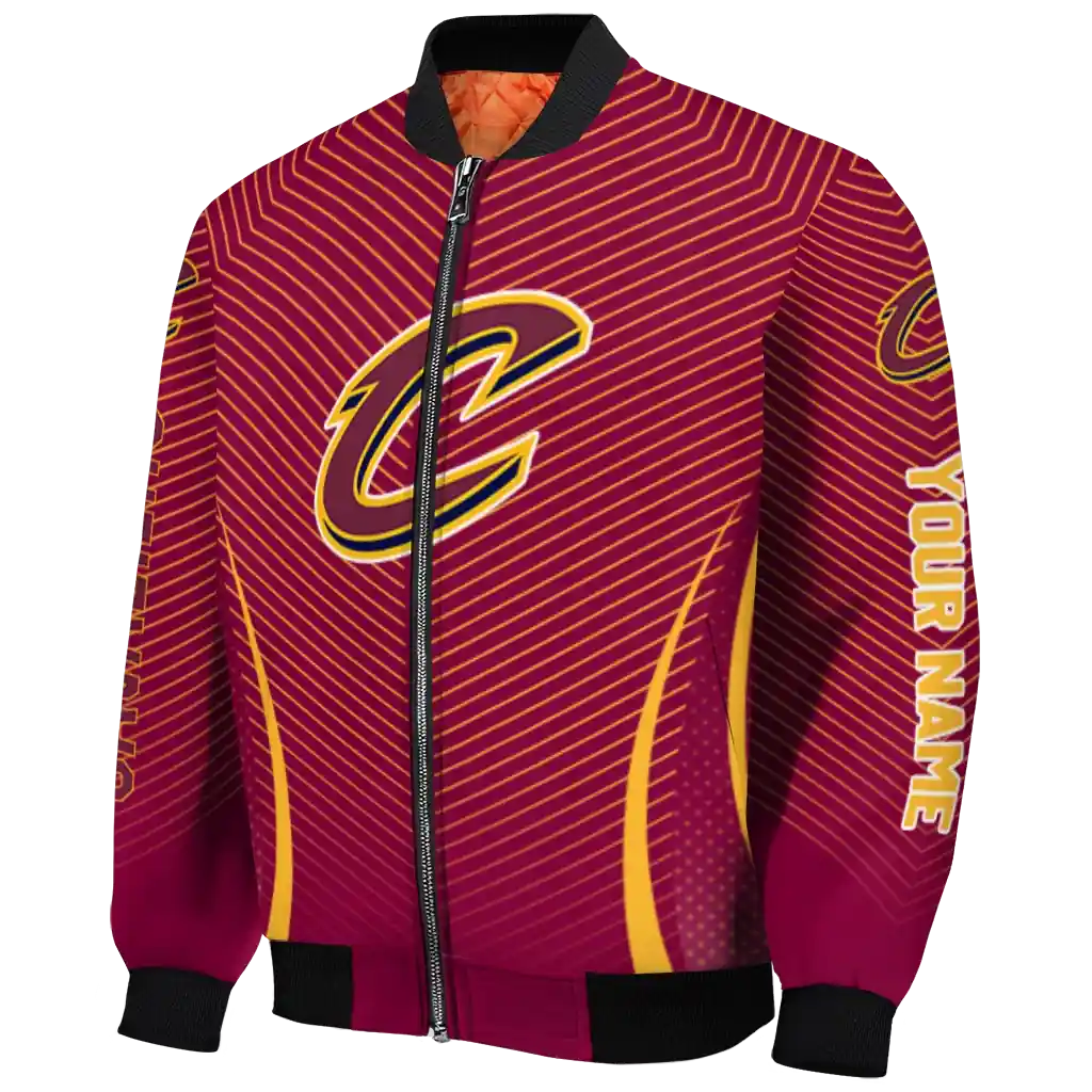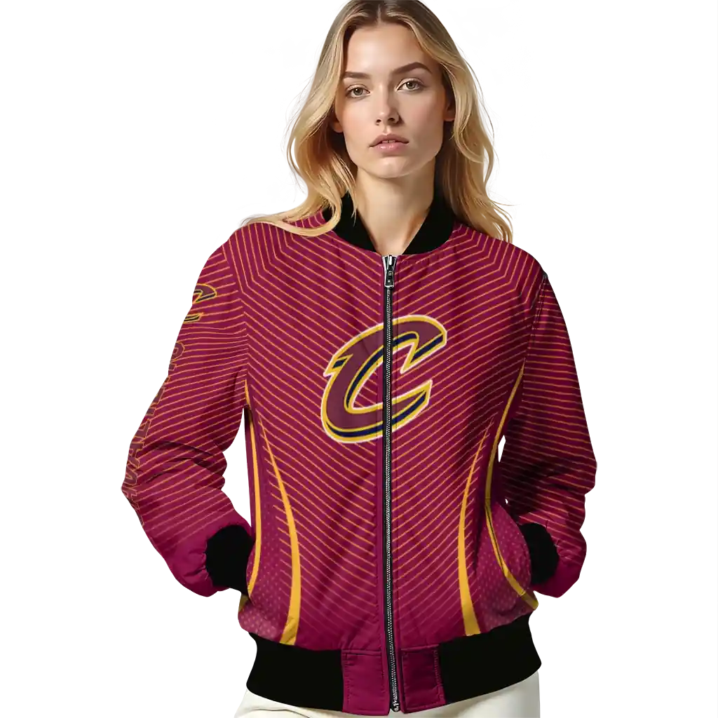 Uncover the details that make this Custom Cleveland Cavaliers Chevron Arrow Wine Bomber Jacket a truly exceptional piece.