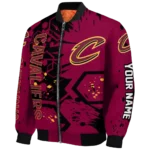 Custom Cleveland Cavaliers Mesh Effect Wine Black Bomber Jacket