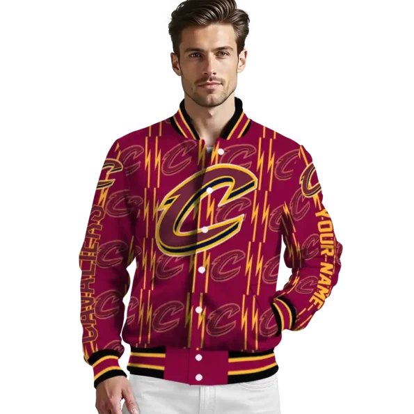 Personalized Cleveland Cavaliers Bolt Stripe Wine Varsity Jacket