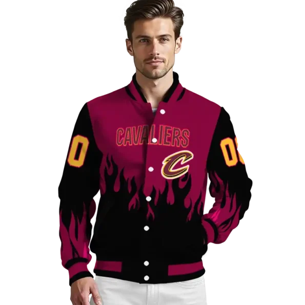 Personalized Cleveland Cavaliers Flame Border Wine Black Varsity Jacket