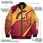 Uncover the details that make this Personalized Cleveland Cavaliers Star Burst Wine Bomber Jacket a truly exceptional piece.