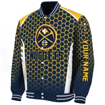 For the discerning NBA fan who values elevated style, this Personalized Denver Nuggets Hexagon Grid Blue Bomber Jacket from Denver Nuggets Jackets’s NBA Fan Pro boasts premium construction for lasting comfort and a proud display of team spirit. Its distinctive design and superior quality offer exceptional value, allowing you to wear your fandom with the same pride as your favorite jersey.