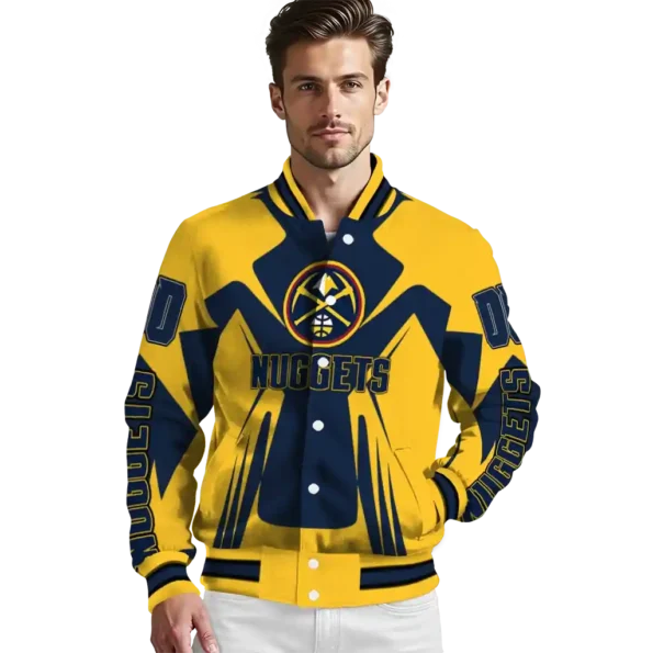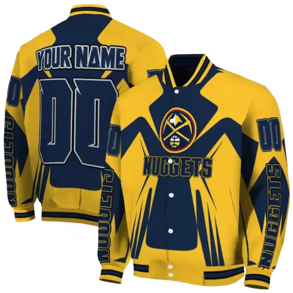 A true must-have for the sophisticated NBA enthusiast, this Personalized Denver Nuggets Chevron Angles Blue Varsity Jacket from Denver Nuggets Jackets offers quality construction for durable, all-day comfort – ideal for showcasing your team pride. Its unique design and superior build provide exceptional value, making it the perfect way to embody your team identity like an iconic jersey.