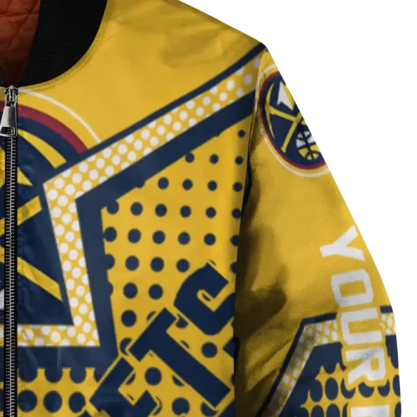 Uncover the details that make this Customized Denver Nuggets Star Burst Blue Bomber Jacket a truly exceptional piece.