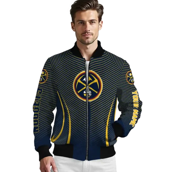 Uncover the details that make this Personalized Denver Nuggets Chevron Arrow Blue Bomber Jacket a truly exceptional piece.