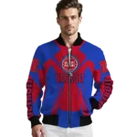 Uncover the details that make this Custom Detroit Pistons Spider Mark Red Bomber Jacket a truly exceptional piece.