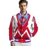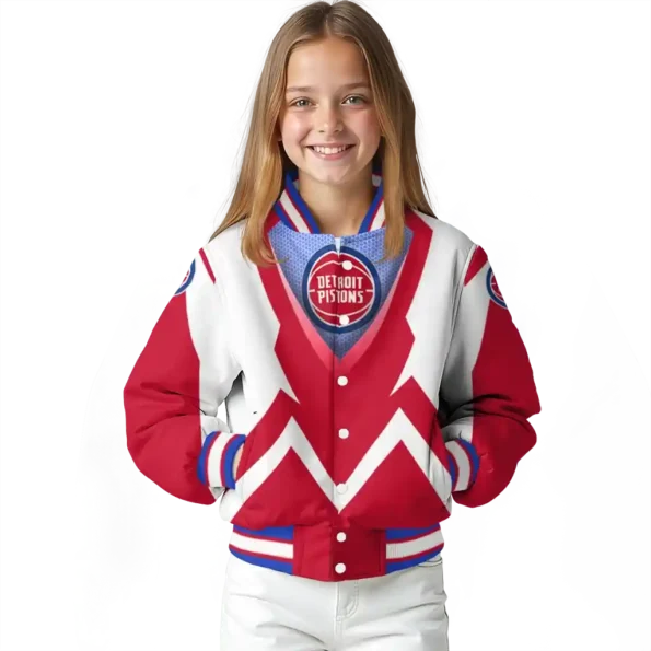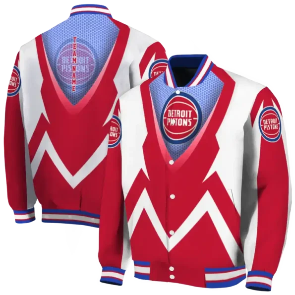 For the discerning NBA fan who values elevated style, this Custom Detroit Pistons Chevron Arrow Red Bomber Jacket from Detroit Pistons Jackets’s NBA Fan Pro boasts premium construction for lasting comfort and a proud display of team spirit. Its distinctive design and superior quality offer exceptional value, allowing you to wear your fandom with the same pride as your favorite jersey.