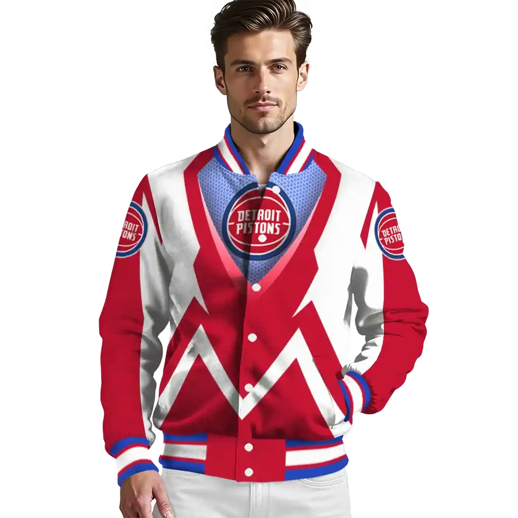 A true must-have for the sophisticated NBA enthusiast, this Custom Detroit Pistons Hexagon Grid Red Varsity Jacket from Detroit Pistons Jackets offers quality construction for durable, all-day comfort – ideal for showcasing your team pride. Its unique design and superior build provide exceptional value, making it the perfect way to embody your team identity like an iconic jersey.