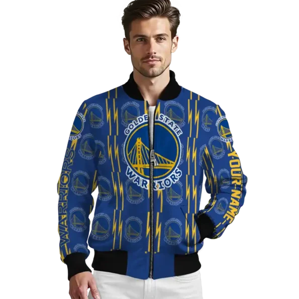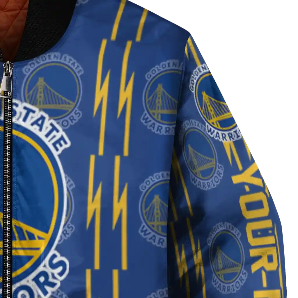 Custom Golden State Warriors Bolt Stripe Blue Bomber Jacket