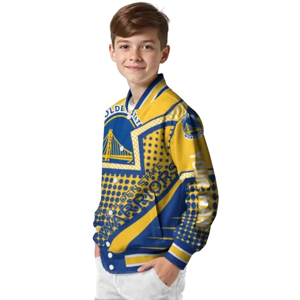 A true must-have for the sophisticated NBA enthusiast, this Customized Golden State Warriors Chevron Angles Blue Varsity Jacket from Golden State Warriors Jackets offers quality construction for durable, all-day comfort – ideal for showcasing your team pride. Its unique design and superior build provide exceptional value, making it the perfect way to embody your team identity like an iconic jersey.