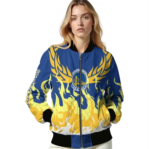 Custom Golden State Warriors Winged Blaze Blue White Bomber Jacket