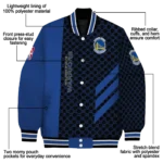 A true must-have for the sophisticated NBA enthusiast, this Customized Golden State Warriors Mesh Effect Blue Black Varsity Jacket from Golden State Warriors Jackets offers quality construction for durable, all-day comfort – ideal for showcasing your team pride. Its unique design and superior build provide exceptional value, making it the perfect way to embody your team identity like an iconic jersey.