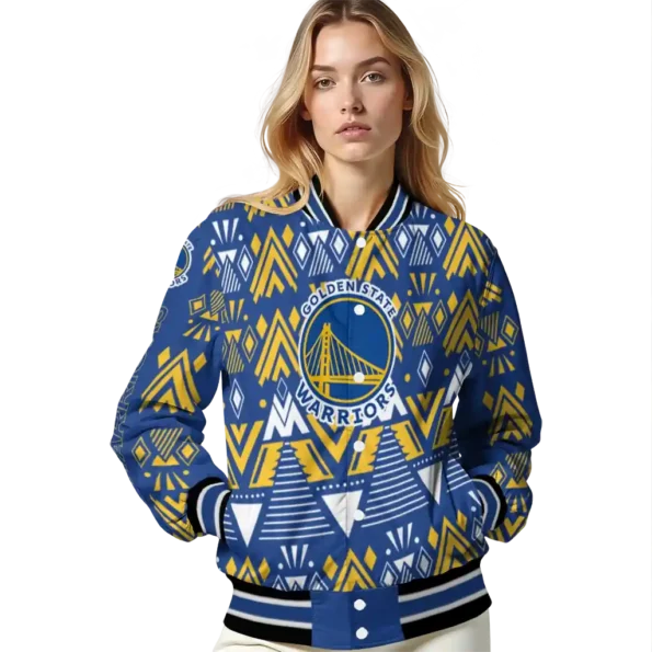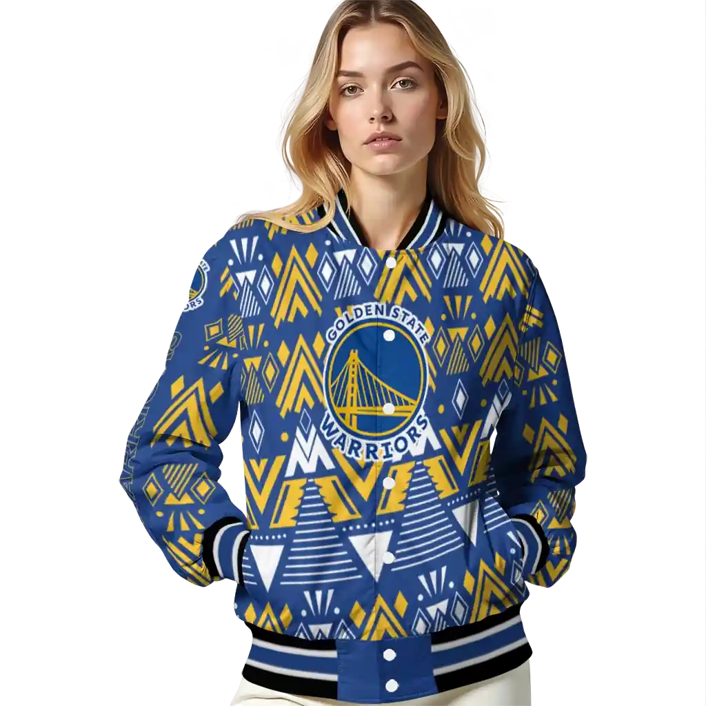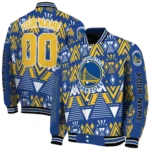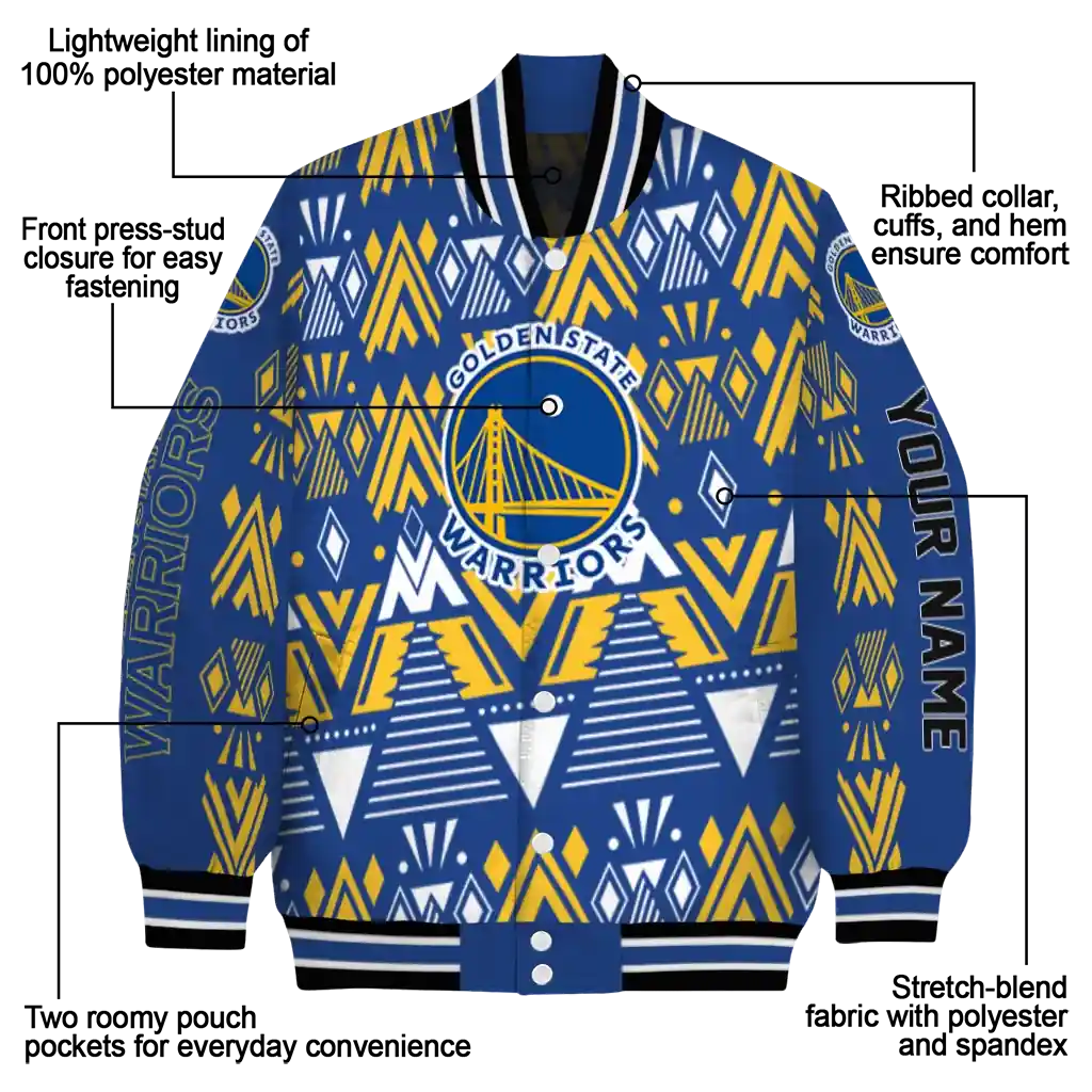 Personalized Golden State Warriors Pyramid Shapes Blue Varsity Jacket