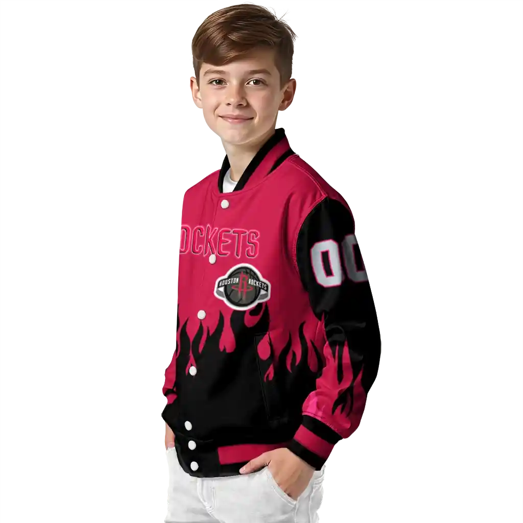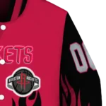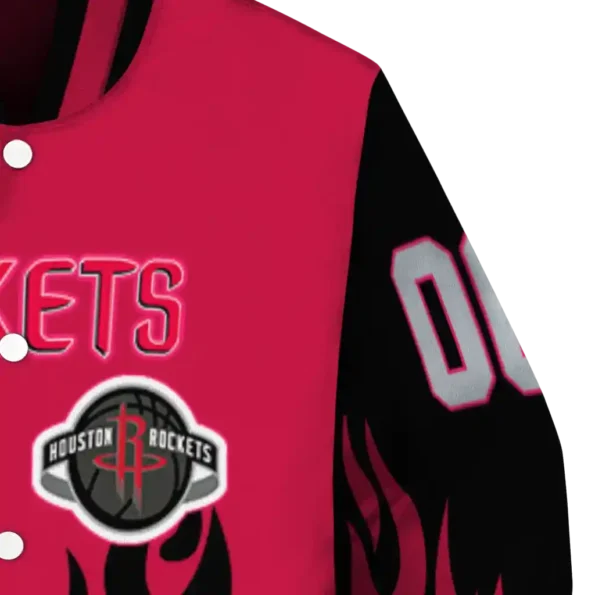 Here’s a closer look at what makes our Custom Houston Rockets Flame Border Red Black Varsity Jacket stand out: