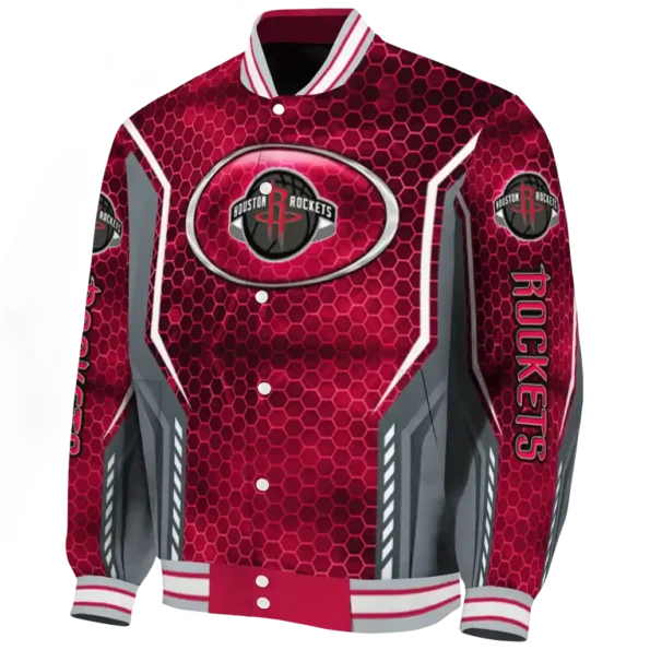 For the discerning NBA fan who values elevated style, this Personalized Houston Rockets Hexagon Grid Red Bomber Jacket from Houston Rockets Jackets’s NBA Fan Pro boasts premium construction for lasting comfort and a proud display of team spirit. Its distinctive design and superior quality offer exceptional value, allowing you to wear your fandom with the same pride as your favorite jersey.