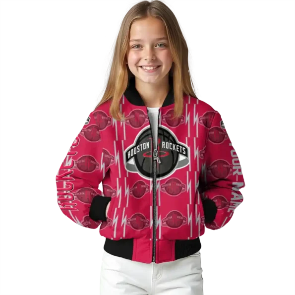 Uncover the details that make this Customized Houston Rockets Bolt Stripe Red Bomber Jacket a truly exceptional piece.