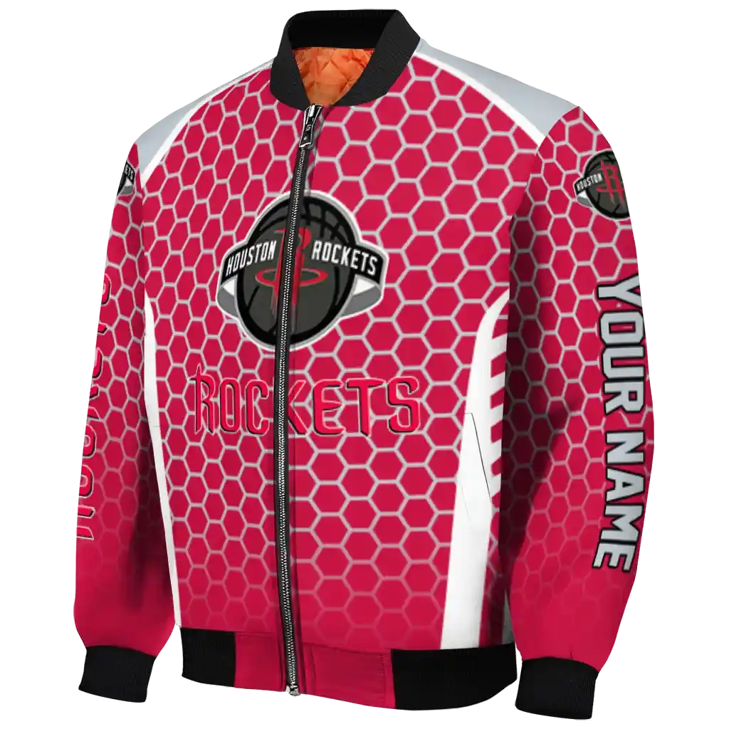 Personalized Houston Rockets Hexagon Grid Red Bomber Jacket