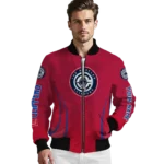Uncover the details that make this Customized Los Angeles Clippers Chevron Arrow Red Bomber Jacket a truly exceptional piece.
