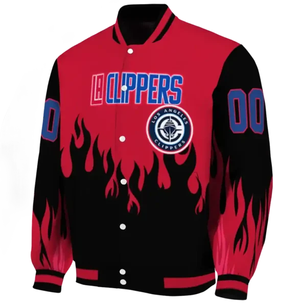 Here’s a closer look at what makes our Customized Los Angeles Clippers Flame Border Red Black Varsity Jacket stand out:
