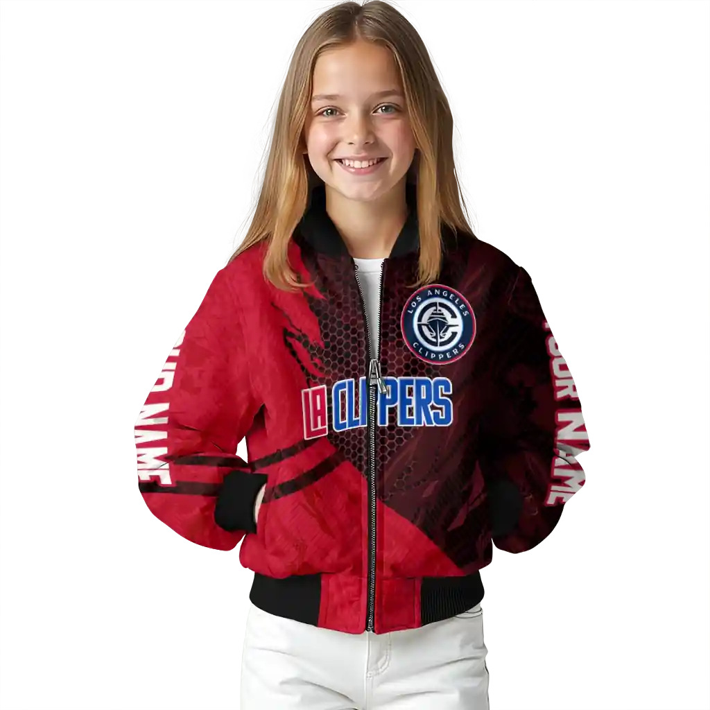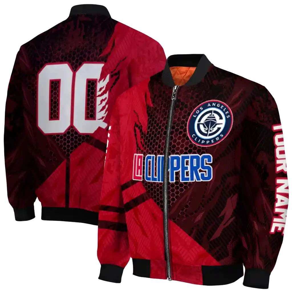 Personalized Los Angeles Clippers Hexagon Mesh Red Black Bomber Jacket