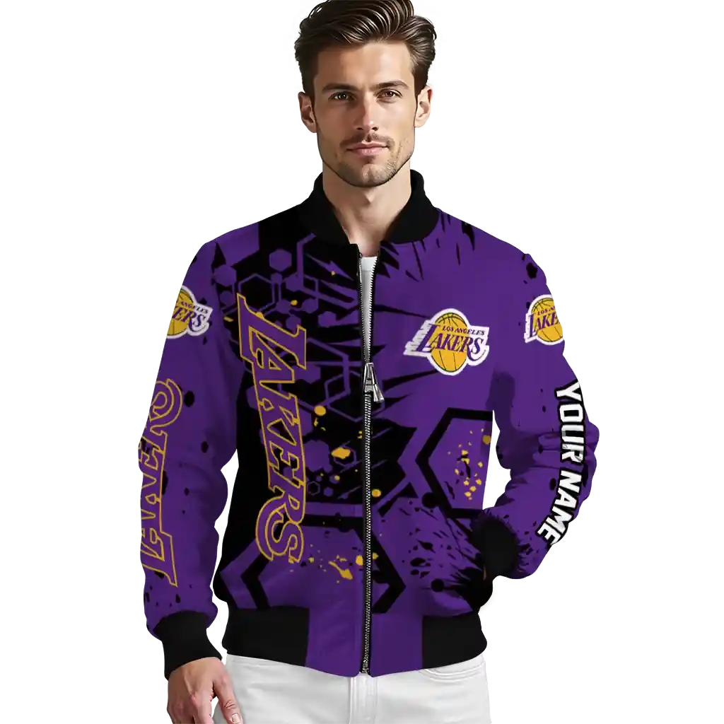 Custom Los Angeles Lakers Hexagon Cluster Purple Black Bomber Jacket