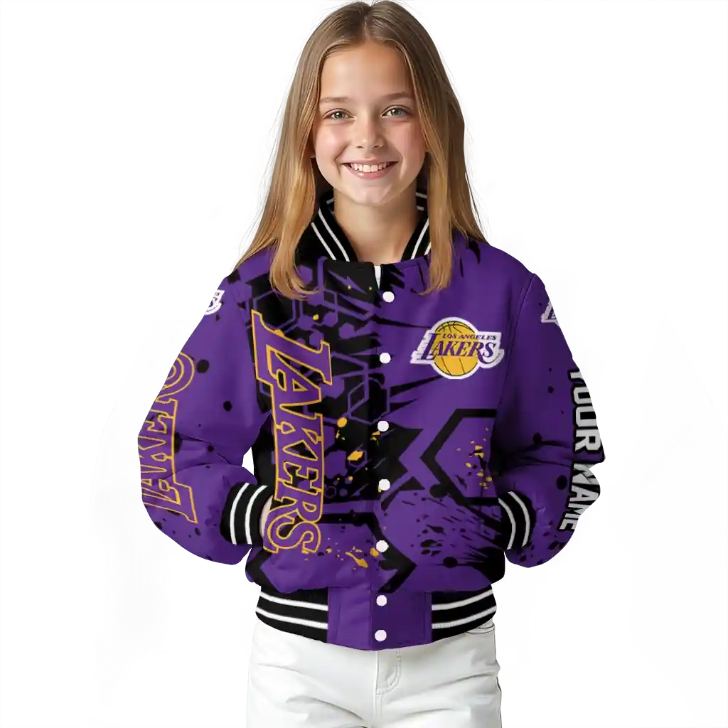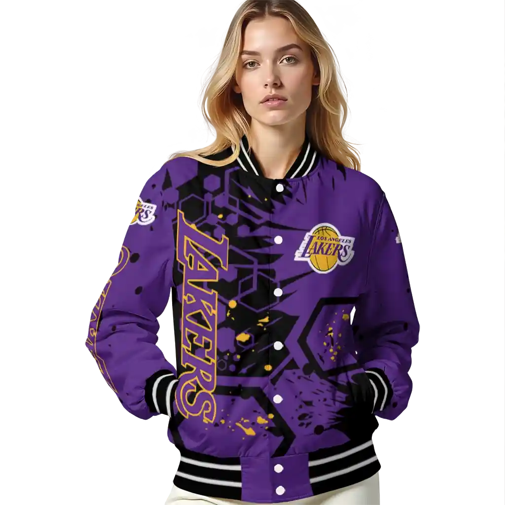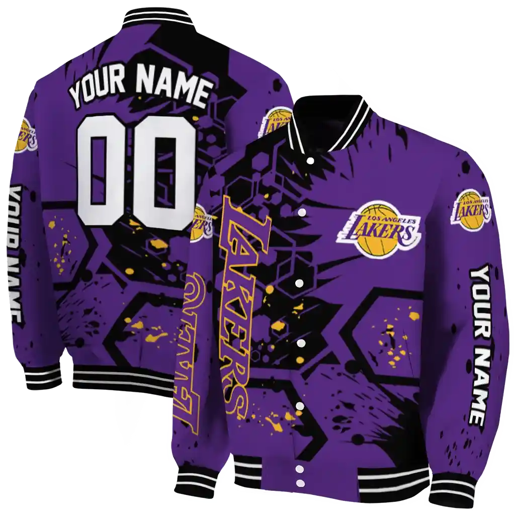 Custom Los Angeles Lakers Hexagon Cluster Purple Black Varsity Jacket
