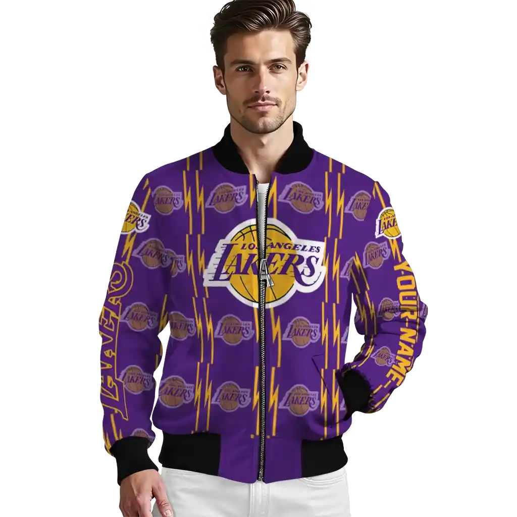 Customized Los Angeles Lakers Bolt Stripe Purple Bomber Jacket